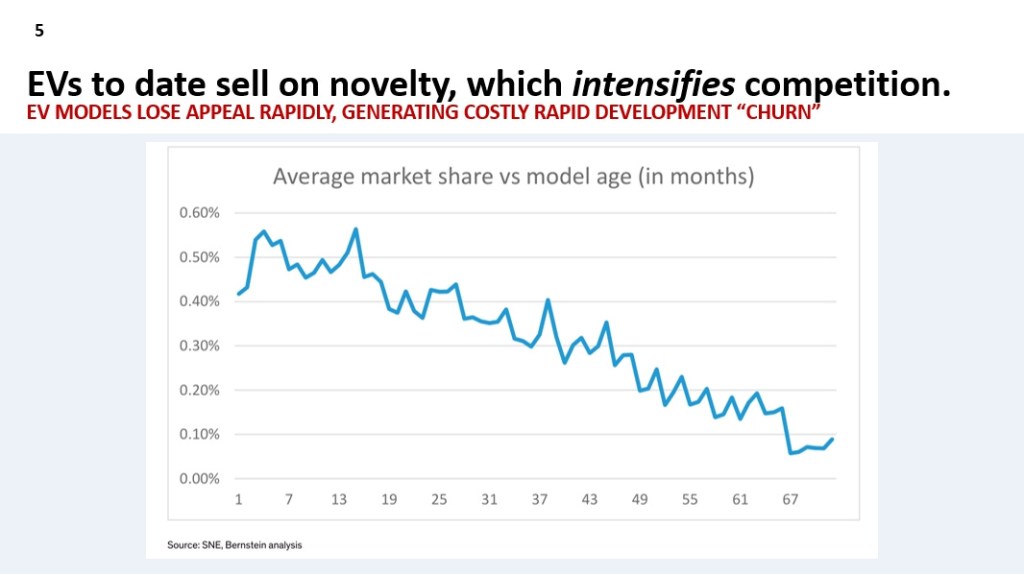 Just as his gambling career surfed a wave of his father’s wealth, Musk’s career as an entrepreneur has surfed a wave of immense bias towards the tech sector tropes that have underpinned Tesla’s investment narrative, leaving the company profoundly exposed as faith in its basic assumptions finally ebbs. This is most evident in Tesla’s aging product lineup, where the stock-pumping profits of recent years turn out to have come at the expense of reinvestment in new sheetmetal. First in China and then Europe and the US, Tesla continues to prove that interior and styling refreshes can’t revive in the face of crushing competition. The theory that Tesla could defy industry’s capital-intensive need to reinvest in all-new models reflected far too much faith in its ability to port a “platform strategy” from the world of software into the very different world of cars, as well as an absurd belief that a vague “innovation moat” (personified in Musk) would keep Tesla one step ahead of the competition.